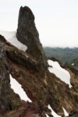 ローソク岩が現れ始めると、ほどなく利尻岳北峰。やったよ!一瞬諦めかけたけど利尻岳登頂できたよ。二人だったから登頂で来たのかもしれない。喜び溢れて記念撮影していたら、山頂写真を撮り損ねてしまった。