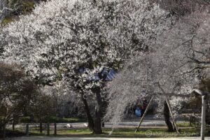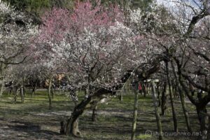 梅は沢山あるんですが、偕楽園は平地なので、丘陵地のように梅の重なりを撮ることはできいませんね。