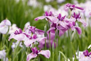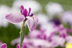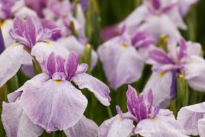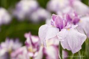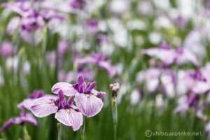 菖蒲の重なりを望遠レンズで圧縮しても良いですし、一輪をアップで撮ってもいいでしょう。