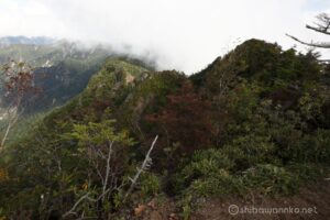 皇海山の写真がないまま登山を終えるのがもったいないので、皇海山を見るためにhisapinと隣の鋸山に向かいます。