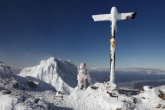 稜線に出ると恐ろしいくらいの冷たい強風に襲われる。