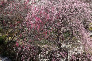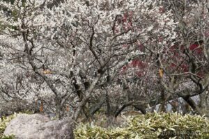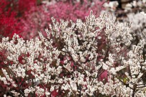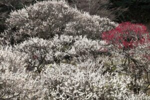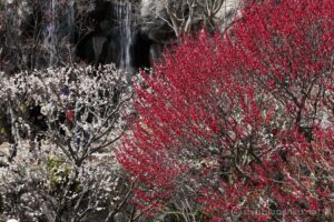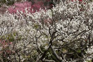 白梅だけでなく赤い紅梅やピンクの紅梅が園内の随所に咲き、素晴らしいインパクトを与えている。