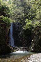 河原から滝壺まで行くと、ゴーゴーと水が落ちている。