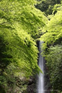 大きくもなく小さくもなく、新緑の合間からすっきりと水を落としている。