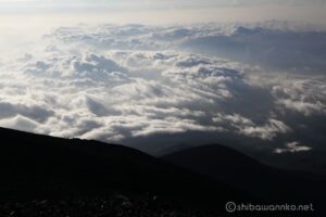 天気が回復した直後で、一面雲海に覆われた感動的な光景が広がる。
