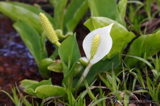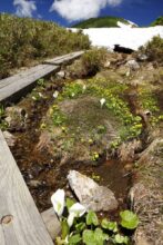 湿原にはミズバショウが咲き、水場も設けられていました。