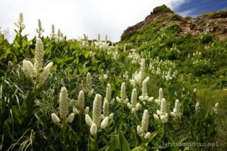 コバイケイソウの白い矛が並ぶ景色は壮観です。