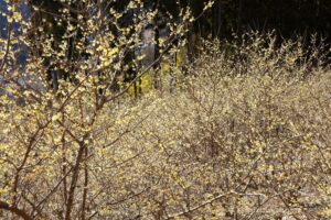 ろう梅は桜や梅のように花の密度は高くなく派手さはありませんが、ここまで植えられているとさすがに見応えがあります。