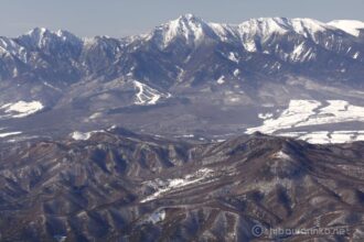 わざわざここまで持ってきた超望遠の100-400mmで北アルプスの山並みを狙ってみる。