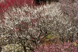 赤・白・ピンクと、いろんな色の梅を重ねて撮ることができました。