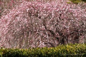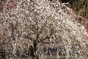 中山晋平記念館、韓国記念館まで来ると、枝垂れ梅が綺麗。
