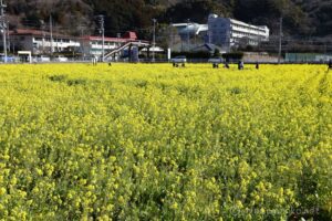日野の交差点に行けばすぐに分かりますが、河津桜の開花時期に一面の菜の花畑が広がります。