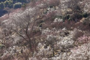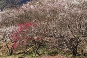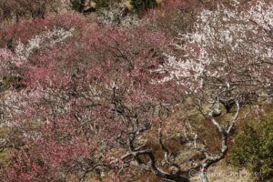 松田町ハーブガーデンの河津桜から小田原の曽我梅林へ行き、トリプルヘッターの三番目は湯河原梅林。