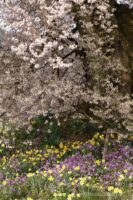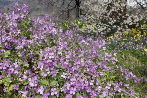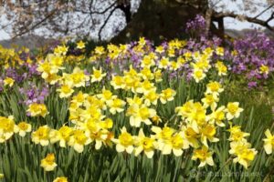 今年はわに塚の桜の根元に、スイセンや紫色の花が咲き乱れています。