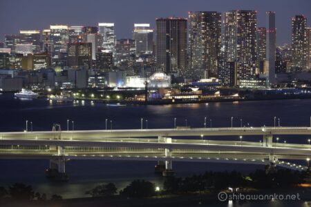 レインボーブリッジの派手さが都市夜景に溶け込み、東京タワーのライトアップも入って文句なしに美しい。