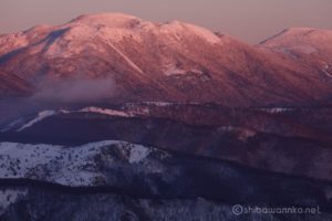 東側には北横岳が真っ赤に染まる。