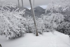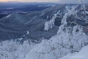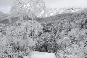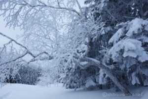 木々が樹氷となって綺麗だけれど光がない。