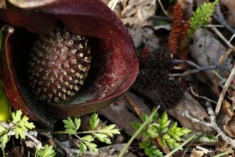 麓まで下りると桜の名所の近くにザゼンソウが咲き乱れていました。