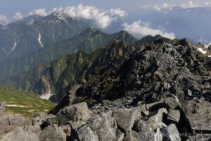 3,000mの稜線が連なる立山三山の稜線は富士ノ折立で終わり、真砂岳へ向けて標高を一度落してゆきます。