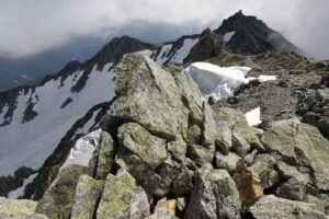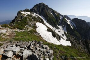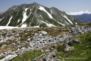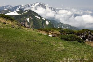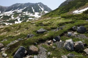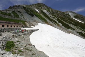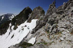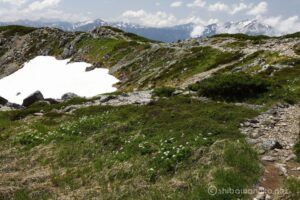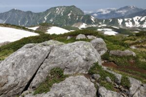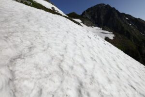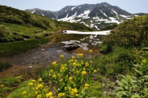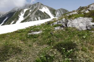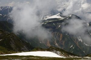 お花は少ないけれど、多くの雪渓が残るアルプスの夏景色が素晴らしい。