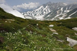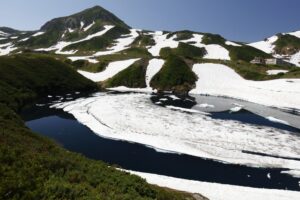 今年は雪が多かったから雪が融け切れておらず、まだ高山植物の花々は雪の下なのだ。