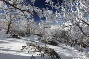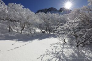 “降雪直後の晴天”を冬山に行く行動基準にしていますが、“山頂が雲に覆われた直後の晴天”も樹氷が素晴らしいため、そんな日も狙えれば素晴らしいかも!