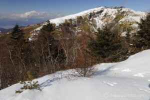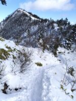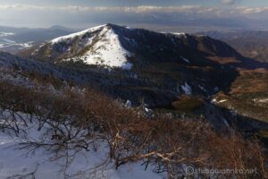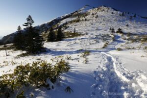 冬山写真に求める、①樹氷、②シュカブラ、③岩肌を白く埋め尽くす十分な積雪等はなかったが、今日行ける範囲で唯一晴れているこの100名山を有難く楽に登らせてもらいました。
