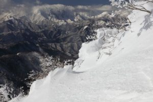 雲が退き、雪の大絶壁が現れる。 すごい!