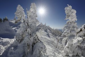 スノーモンスターの間から輝く太陽。
