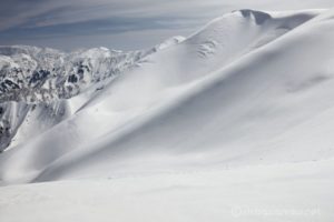 名残惜しい山頂。 広大な雪面が美しい。