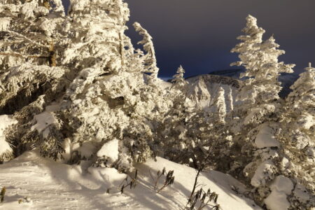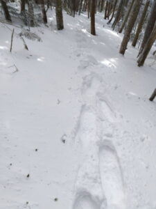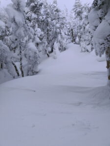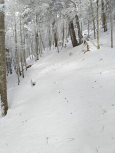 ● 登山口で既に10cm積もっていたら、上部は膝ラッセルを覚悟した方が良い(⇒ スノーシュー要検討)。