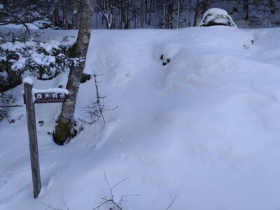 恐る恐る西尾根登山口を覗きに行くと、大雪後思った通りのトレースなし。