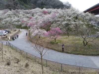 梅の香りを楽しみながら梅園内を歩いても良いですし、一番の撮影スポットは向かいの土手の上なので、撮影目的の方は歩き回らず土手の上だけで良いかもしれません。