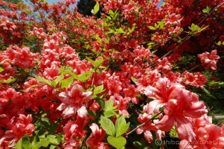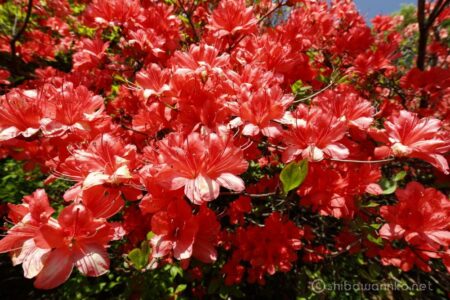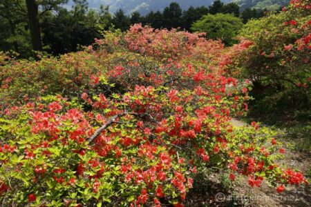 入口で活動協力金200円を払って入園すると、真っ赤な大きなツツジが迎えてくれる。