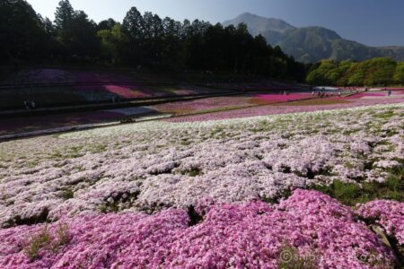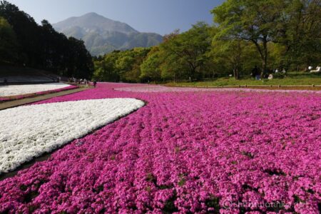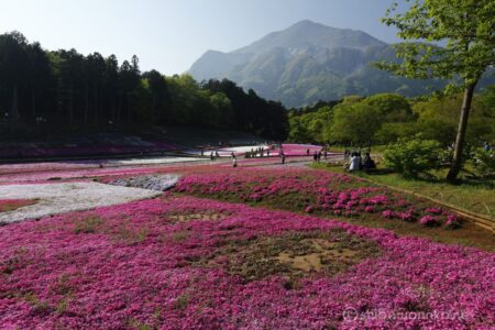 まずは芝桜の絨毯の向こうに武甲山が聳える関東屈指の名園、羊山公園から。