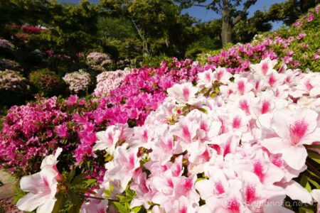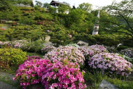 駐車場から千光寺公園に向かう坂道には、満開のツツジが迎えてくれる。