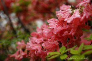 山頂直下には鮮烈な赤い山ツツジが咲く。