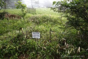 目的のアツモリソウは、、、と探すと、山頂東側に保護策向こうに保護柵キューブ。