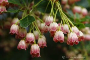 白の下地に赤い縞が入るサラサドウダンが可愛らしい。