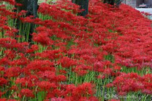 しかも、ただヒガンバナが植えられているのではなく、その中の木々が良いアクセントとなっている。