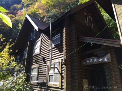 最初にバッジをゲットするべく両神山荘に寄ると、可愛いわんちゃんが干されている。