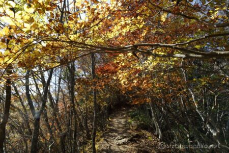 清滝小屋を過ぎ両神神社を超えた上あたりからようやく紅葉が始まる。