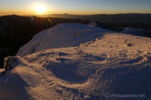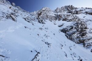 また天狗岩から上部の岩場部分も雪の状況次第ですが、年末年始であれば雨で氷化することも想定しにくく通常は柔らかな雪になります。