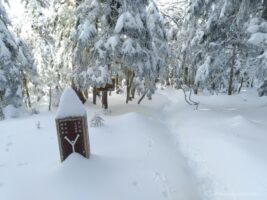この区間は特に雪が深くなるので、アイゼン歩行よりはヒールリフターを効かせてのスノーシューの方がずっと有効だと思います。