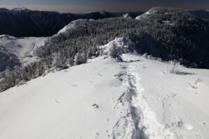 塩見岳のルートは降雪直後でトレースが消えている状況でも、夏道を知っていれば何となく分かり、道迷いのリスクはそれほど高くはありません。