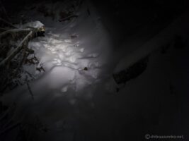 日没後の真っ暗の雪道を500ルーメンの照度が必要十分に照らしてくれました。