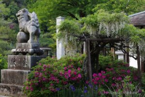 つつじと白藤と狛犬。