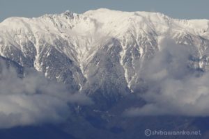 中央アルプス側を見やると、千畳敷カールをたたえた宝剣岳を識別した。