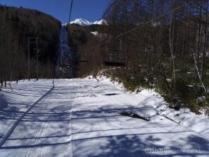 スキー場を中腹まで下りると微妙なY字路があり、ここで左のゲレンデに進むがポイントです。