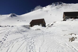 自分の場合は、一度目の冬季の乗鞍岳山行は勝手も分からなかったので、安全を期してピッケル+アイゼンとスノーシュー+ダブルストックの2セットを持っていきましたが、結局アイゼンとピッケルは一度も使いませんでした。